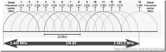 - Regla de los 5 canales: Para evitar totalmente el solapamiento, se deben dejar cinco canales de separación entre los canales elegidos.
