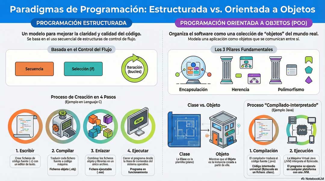 - Orientados a Objetos (Java, C#, Ada): El código se encapsula en objetos. Esto permite que cualquier modificación en un objeto se extienda automáticamente a todos los elementos que dependen de él.
