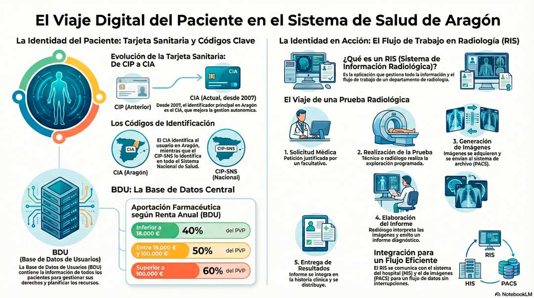 En el modelo aragonés, el RIS (Radiology Information System) actúa como el núcleo de gestión administrativa y clínica, mientras que el PACS se encarga del almacenamiento y distribución de imágenes.